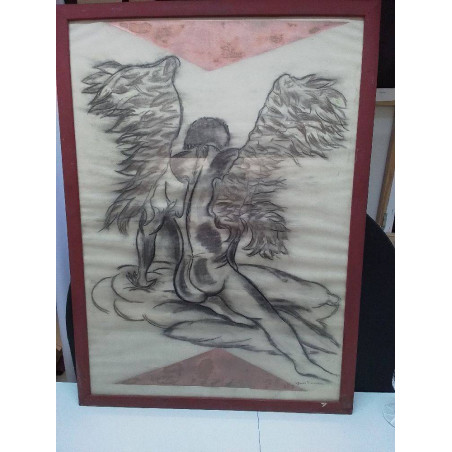 TABLEAU FUSAIN SIGNÉ MOTIF ANGE