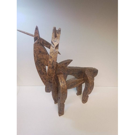 SCULPTURE BOIS ANIMAL A 2 TÊTES