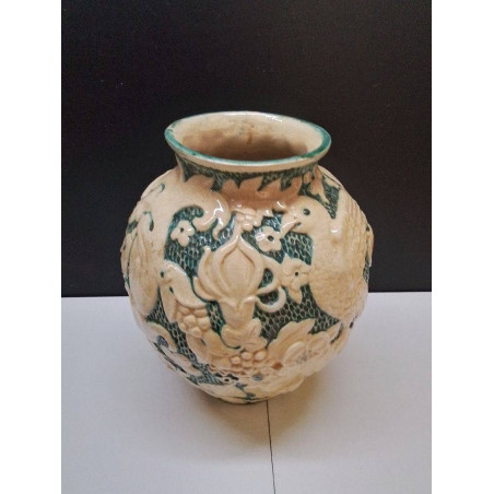 VASE ANCIEN CÉRAMIQUE VERT BLANC ÉMAILLÉ
