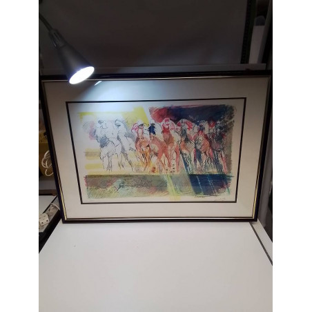 LITHOGRAPHIE LA COURSE DE CHEVAUX PAUL AMBILLE