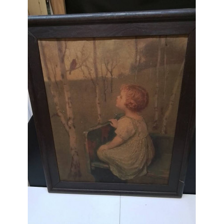 REPRODUCTION ANCIENNE JEUNE FILLE SUR UN BANC