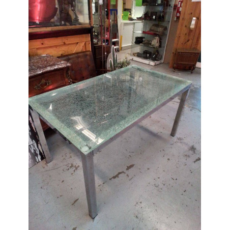 TABLE PLATEAU VERRE CRAQUELÉ