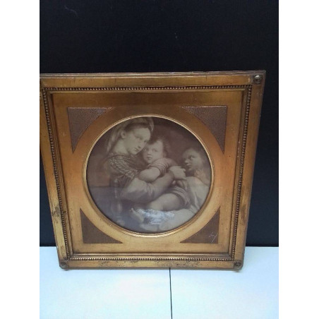 REPRODUCTION VIERGE A LA CHAISE CADRE DORÉ
