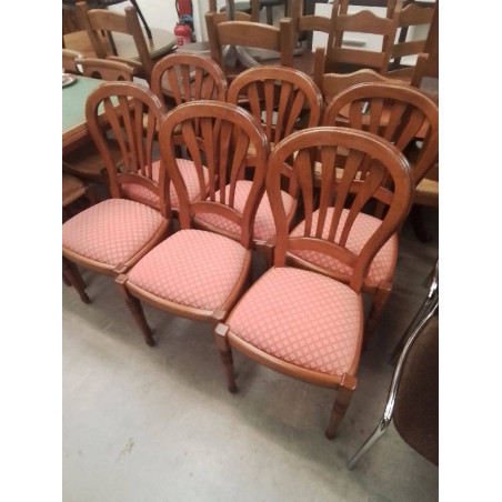 LOT 6 CHAISES EN BOIS TISSU ROUGE